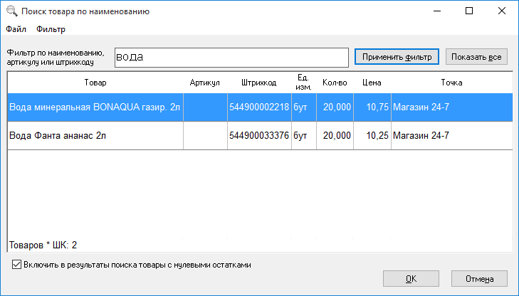 - Установите данный флажок, если необходимо видеть в результатах поиска все товары, включая товары с нулевыми остатками.