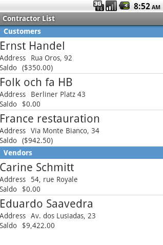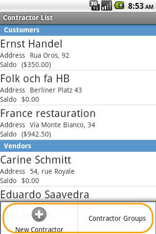 Dictonary of contractors contains information about suppliers and customers. One click on the row with the contractor name will open form "Contractor Preview".