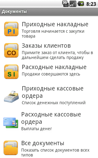 Щелчок по разделу «Документы» в Главном меню открывает перечень типов документов.