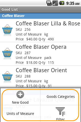 Directory of goods contains information about goods and also reflects the goods balances. One click on the goods row will open the form "Good Item Preview"