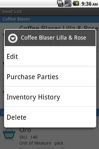 Context Menu is opened by clicking with retention string of the goods item.