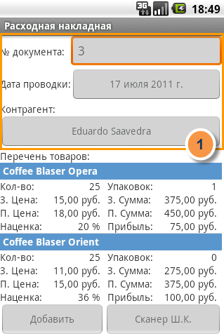 Расходная накладная: шапка документа