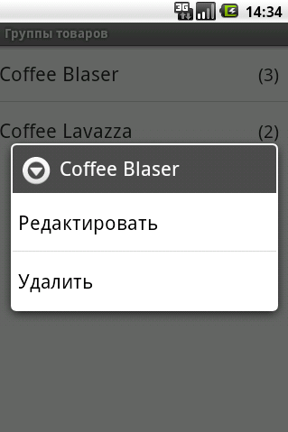 Контекстное меню открывается нажатием с удержанием на строке группы товаров.